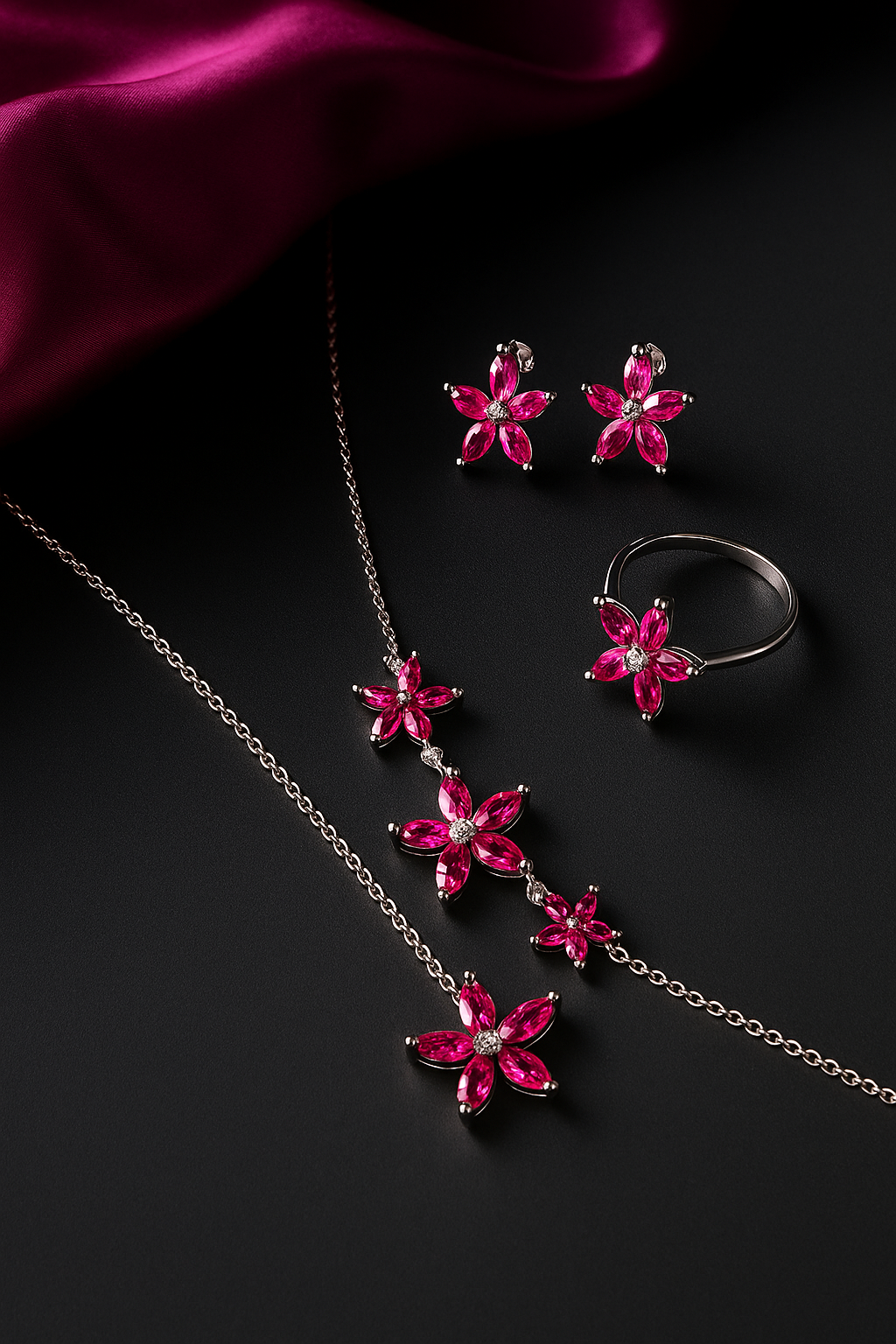 This expert-crafted combo set includes four premium 925 sterling silver pieces: a pendant, bracelet, earrings, and ring. Each item is finely detailed to ensure durability and sophisticated style, providing a versatile collection that seamlessly transitions from daily wear to special occasions. Perfect for those who appreciate quality craftsmanship and timeless elegance.